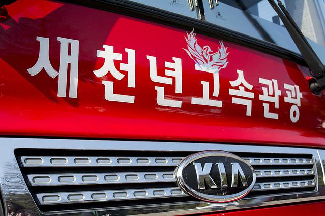 一路上和郑导游聊天,说到韩国工业时,他表示韩国大多数的车都是KIA和现代,其实并不是真的爱国,而是国产车便宜~~好吧,这国内的情况一模一样,哈哈哈哈。