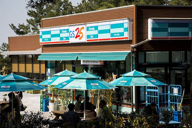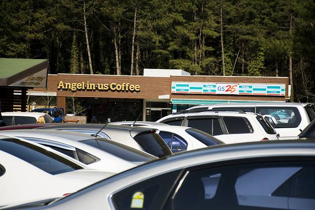 停车场旁边就是一个GS25的便利店,左手边还有一个叫Angel-in-US coffee的咖啡连锁店。
