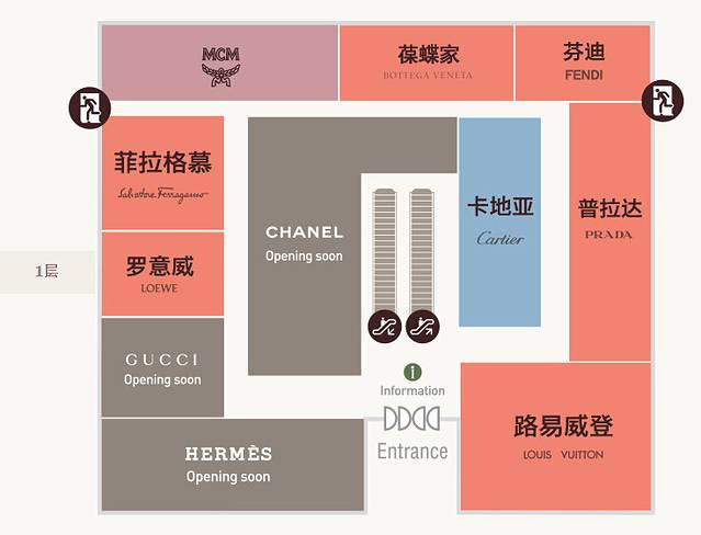 1F主要出售首饰箱包一类的商品,包括GUCCI、Cartier、路易威登等等~~