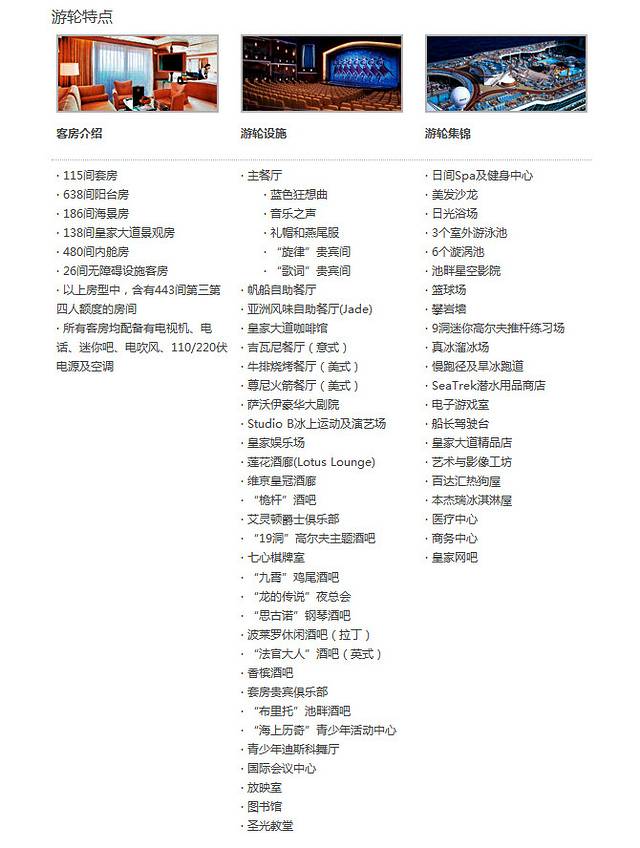 这是海洋水手号上面的设施简介,这次和朋友是住的海景房,位于第三层~~假如带父母来玩的话,可以考虑阳台房,不过也就是在天气好并且巡航速度不是很快的情况下能够在阳台眺望海景,否则海风太大,也只能躲在房间里哦~~
