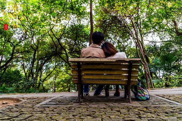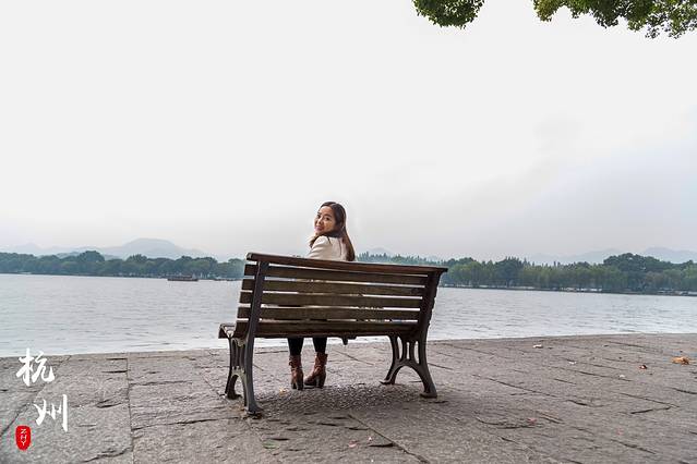 西湖边的长凳、亭子,拍起。