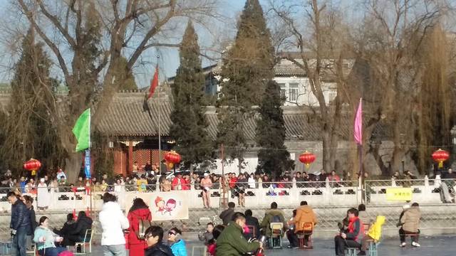 什刹海冰场真是太热门了,排队排了1个半小时才拿到进门卡,原来因为北京现在冬天比较热,冰已经有了融化的趋势,来滑冰的人又比较多,因此冰场为了安全起见已经开始控制人流。