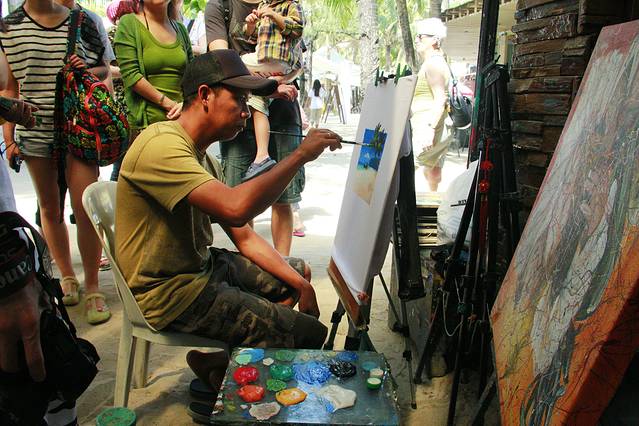 长滩的主干线、除了4km的沙滩一条线、和D'mall的一条街以外、长滩几乎就剩下了这么一条小水泥路..一般来说游客应该都只是在D'mall和沙滩上、这条路只是工具...长滩岛上的汽车很少、除了各个酒店和spa等等店的接送车、剩下的基本上都是岛上独特的公共交通工具——tutu车了...类似于中国的摩的....