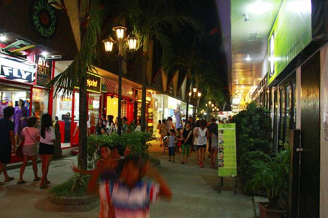沙滩后面、通往D'mall的路..两旁是各种风味的店、伴着椰子树