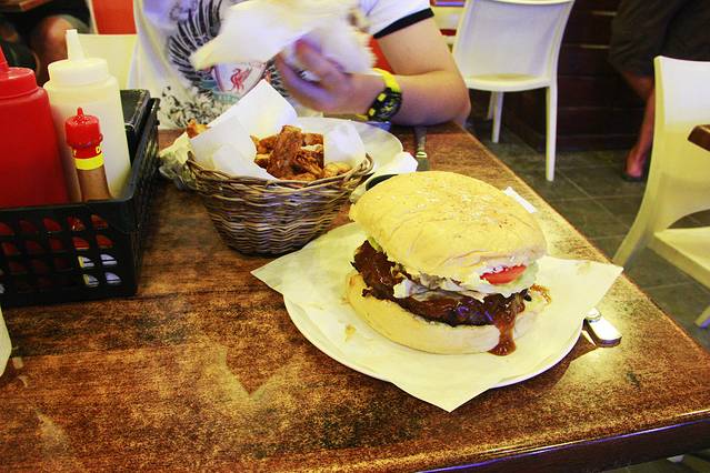 上文提到过的那个我超级喜欢超级喜欢的汉堡 店 Bite Club,第一天晚饭吃的就是这里、这是它招牌的1/2磅的大汉堡 、里面的大片牛肉味道很好、一个汉堡 足以吃饱一顿了w~~~这次旅行的最后一餐也是来的这里,吃的是2人份的最大汉堡 ,整整1磅重...