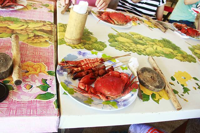 在鳄鱼岛上吃海鲜..都是最新鲜最棒的..那个木板和木棒,是用来敲碎螃蟹壳的w~真的很有用!吃完饭也别忘了在门口的橘子水里洗洗手,去掉腥气。
