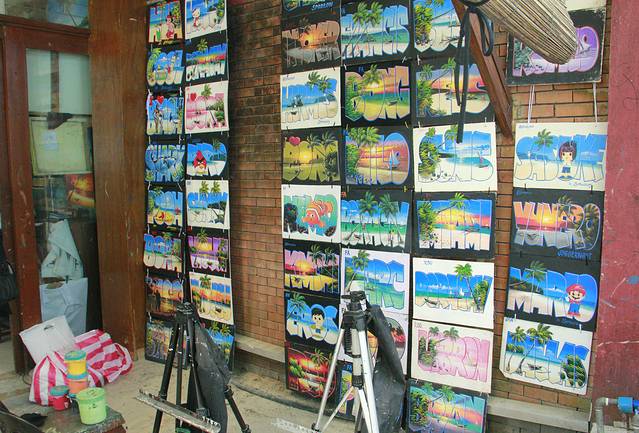 D'mall里的一个创意店。墙上的是画稿、字母改成游客的名字、手绘衣服w~