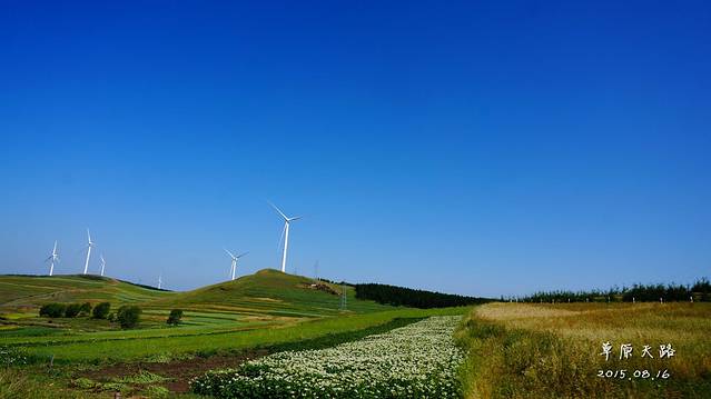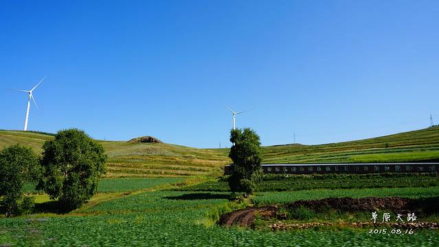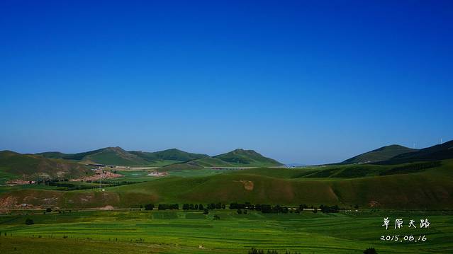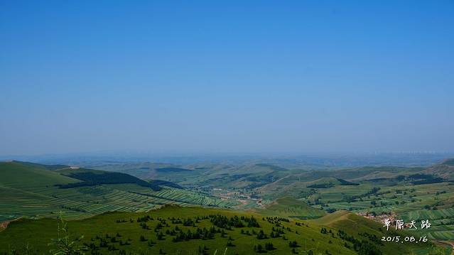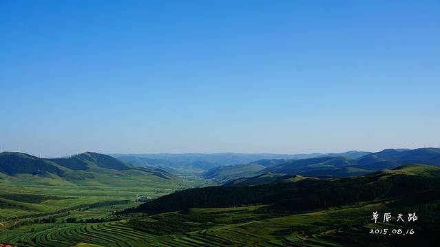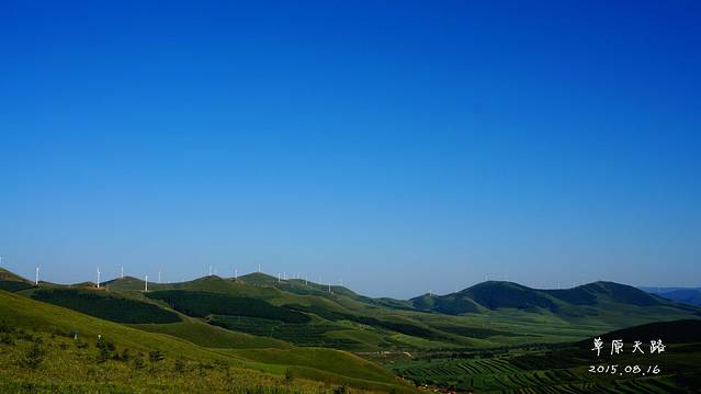 如果要去草原天路,1天实在是太赶了,再加上北京出发,碰到的最大问题——堵车。所以我们选择中午出发,按照导航,一路前行,期间也堵车了,但是没有堵太久~终于在下午4点多到达草原天路入口。