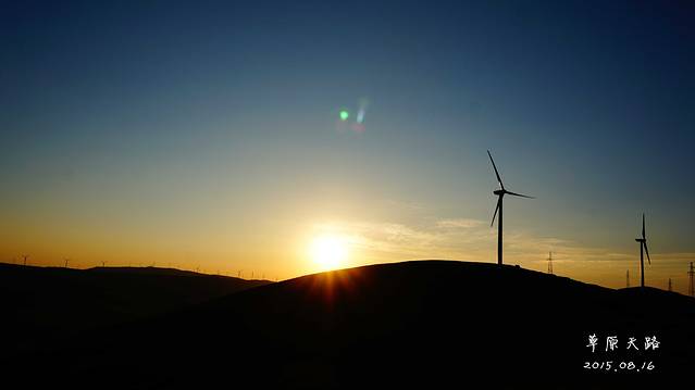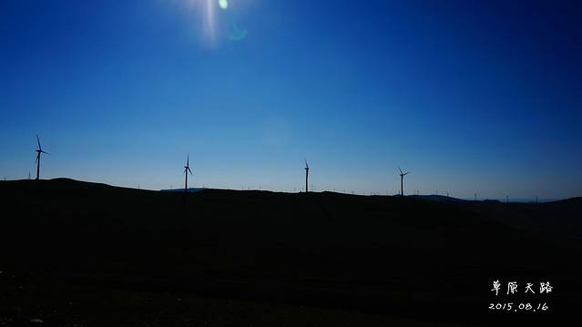 风车,是草原天路一大亮点,远看虽小,近看特大!