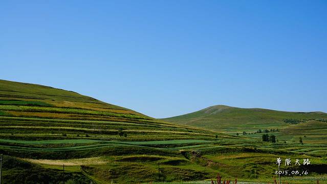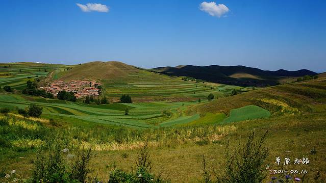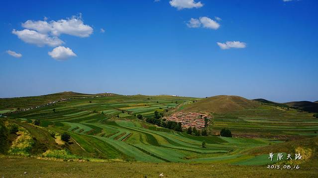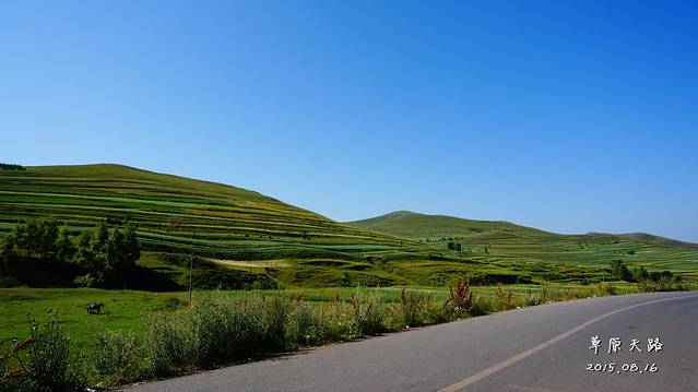 草原天路,有很多梯田,远看非常壮观,景色非常靓丽!