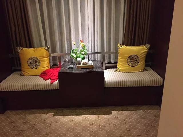 这是酒店房内的沙发茶几。很古典是不是。