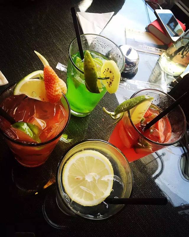 绿色的奇异果鸡尾酒,红色是草莓的。酒味还蛮大的。但是很好喝。好贵的说。一杯58哎~~