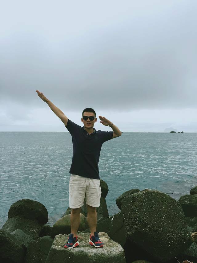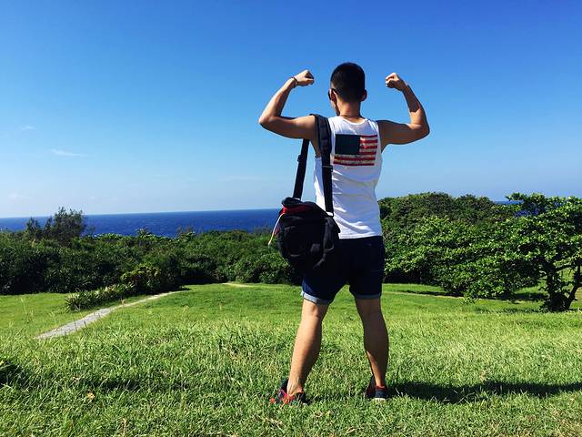 本来不打算和大海合照的我,拜托同事给我拍了一张。我觉得垦丁的海很棒。
