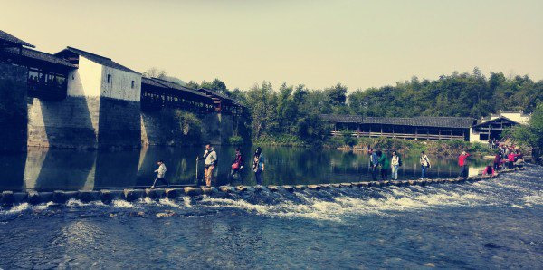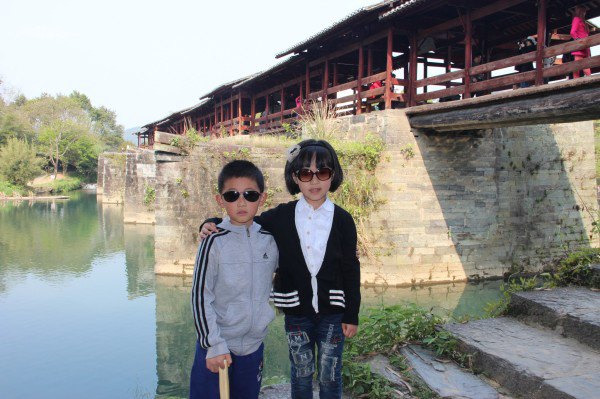 今天是在江西的最后一天了,第一站是彩虹桥,很风景优美也有娱乐性的一个景点,先不说那座桥斑驳间有着历史的味道,已是很有点底蕴的景色,只说溪水中的一溜儿石敦才是真真吸引了大家的注意力,争先恐后的踩着它过河。轮到我们的时候,前面有一对男女退了回来,引起了一点小骚动,原来竟是那位男士吓得不敢走了,被众人善意的笑了一通。