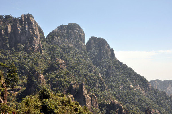 三清山有两条索道,一条叫金沙,一条叫外双溪,景区很大,两条索道离得极远,开车足足要30分钟。导游一再强调从哪里上去的,要从哪里下来,走错的话,在山上要多费4小时,才能从一边走到另一边的索道。