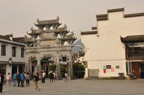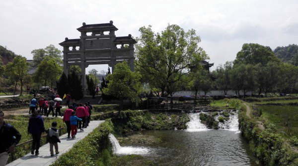 其实它是一个村庄围起来的景点,要逃票想来很容易,不过我们手里都有婺源大套票,乖乖的绕到正门去检票,这个牌坊是出口。