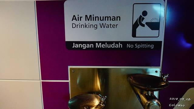 在马来西亚候机大厅,本来打算接点热水喝的,结果没有,只有冷水,有些人都不知道冷水在哪,下图就是接冷水的提示。