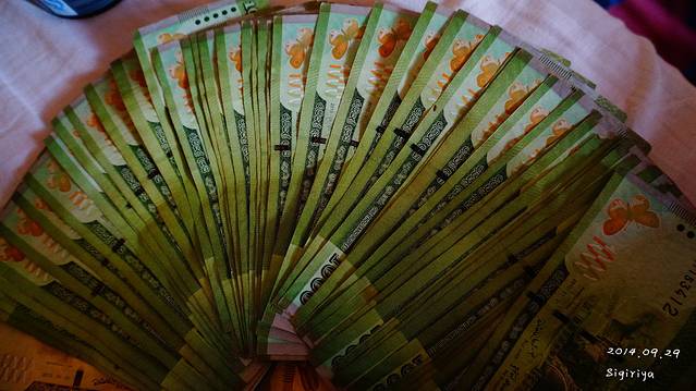 由于斯里兰卡和国内时差相差3个小时,所以到达当地时间是10:40.出了机场,第一件事就是换钱,之前在国内换了800$,在机票换了600美刀的卢比,机场汇率是127.4,剩下那200美元都是在当地换的,汇率是127,没差多少。本来打算直接在机场办当地电话卡了,但是排队办卡的人超多,再加上电话卡价格1300rs,不低,所以我们就没办,出门本来打算找机场大巴,但事实也没找到,后来花了200rs 乘着tutu去了一个去锡吉里耶的公交站。