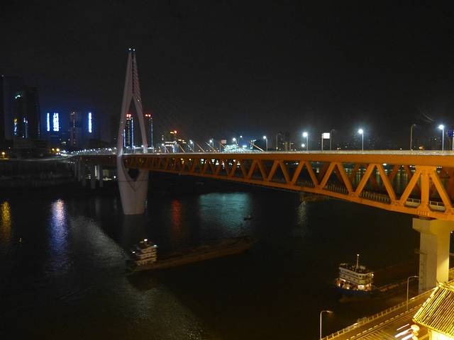 倒是组长订的如家酒店位置非常好,就在嘉陵江边上。穿过临江公路,沿着台阶走到江边。江水宽阔平静,略呈绿色。几艘货船停靠在江边,船上的工人在做饭、下棋。也有人下到货船跟前的小木船上,拽着缆绳上岸去买些生活必需品。有几个裸泳的男人,腰上系着救生圈,全然无视岸上的人们的目光。把视线放大些,一座钢铁斜拉桥横跨两岸,对岸的公路上车流滚滚,巨大的广告牌矗立在高耸的大厦上,而就在这些嘈杂下面,江边却是另一番悠闲的景象,对比所需要的距离实在太近了。抽两支烟,任思绪在平静与喧嚣之间往返游荡。