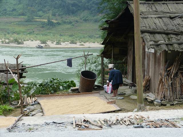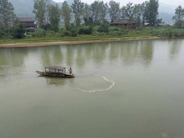 都柳江不是景区,却有最原始最自然的美。江水清澈碧绿,沿岸的山上郁郁葱葱地长着一种笔直的树木,一个个古朴的水族小村寨点缀其中。在路边停车下来,江边有几只小渔船,据说江里出产角角鱼。紧挨着路边有一个小木屋,周围整齐地堆放着捆扎好的劈柴,木屋的下面就是江水。一位近八十岁的水族老人独居在这里,她佝偻着腰,光着双脚,正在一片苇席上晒稻谷。纵然景色如画,却还要为温饱操劳。可是我却时常想,等到我退休了,我要住在一个青山绿水的地方,远离喧嚣,远离纷杂。一所老房子,门前有一片菜地。早上起来打扫庭院,种菜浇园,只要她坐在树下,看着我的背影。不必为生计发愁,只为享受心里的一份踏实。傍晚,坐在院子里,看着她明亮的眼睛,两个人喝几杯酒,牵手看一会儿夜色,过往的痛也罢喜也好,悠悠地叙说,在沉静的夜里相拥而眠。