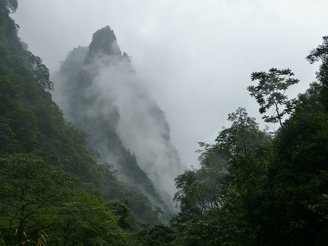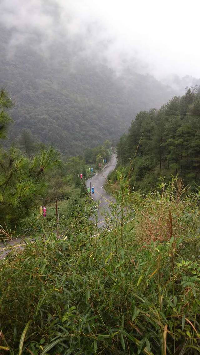 在景区停车场花30块钱找了一辆小面包直接载我们到北门,省去坐景区大巴的钱。我再次问起下雨,司机说,只要看山上的云雾是向上还是向下。从车窗外看去,山体被云雾笼罩着,的确是缓缓向上升腾。
