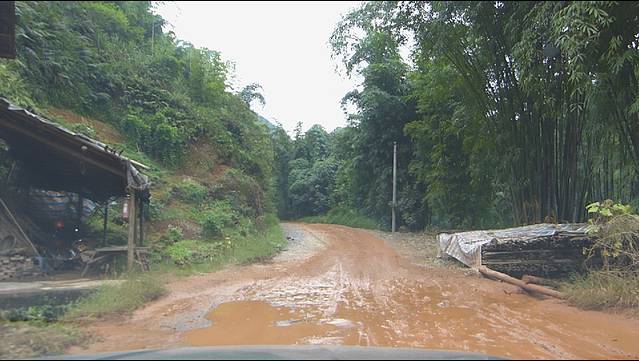 从红石野谷出来,要去往织金洞。考虑到一下午的时间赶不到织金县,所以组长计划到大方县住宿。规避高速,从赤水向西南斜插到叙永国道,是一段乡级公路。路面是淡红色的石块铺成,路一侧的山体上的小瀑布流到路面上,有很多水坑,有一小段已被水整个淹没。两边的竹子湿漉漉的,越发清新翠绿,这才是原始的景色。我以15迈的速度开着这辆底盘很低的绅宝,不时要躲避大大小小的水坑。组长兴致很高,用相机拍着视频,并称赞我经过这段路,可以去往西藏了,我心大悦。