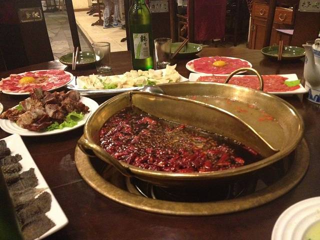 等到薰衣草她们回来已近下午三点,我已经饿得连上台阶的力气都没了。向酒店的服务员打听附近哪家的火锅比较地道,服务员推荐了渝厨老火锅。可能是错过了午饭的时间吧,店里就一桌人,倒是清净。火锅端上来,里面飘着一层油汪汪的辣椒和麻椒。吃起来一会儿工夫嘴唇就没有知觉了。大厨在旁边看出了端倪,走到桌前说,你们调的小料不对。于是他拿起小碗重新调好,打开专用的易拉罐装的香油,全部倒进碗里,说,你再尝。果然,没有那么大的麻味了。原来,那整罐的香油是起冷却作用的,并且,重庆火锅是不能用芝麻酱当小料的,讲究的是锅与料的和谐搭配。看到我们这下吃出了滋味,大厨满意道,我对待食客比老板好。