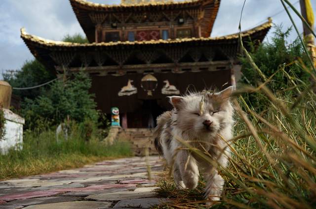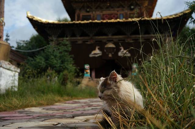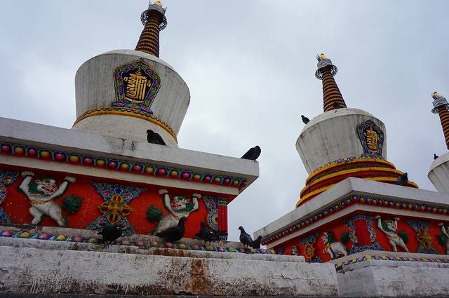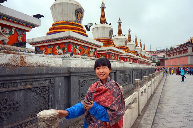 寺庙里穿行着红衣的喇嘛,见人微笑,你若双手合十,他也便回礼给你。