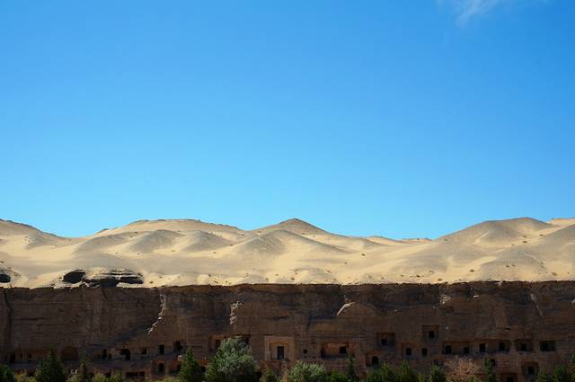 去往莫高窟的途中,就能看到很多小的洞窟,基本已被某个时期人为以及自然风化所毁。