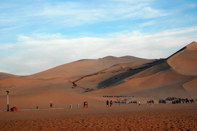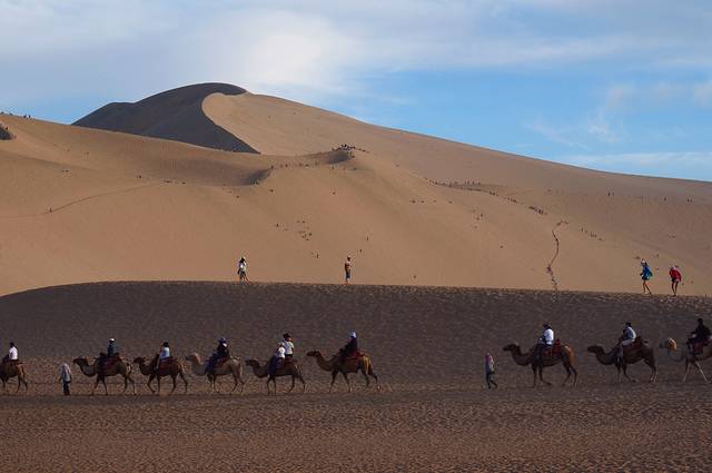 现在鸣沙山有滑翔跳伞,骑驼遨游等沙漠娱乐项目,还算不错