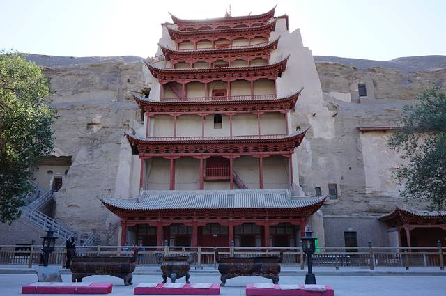 俗称千佛洞,坐落在河西走廊西端的敦煌。它始建于十六国的前秦时期,历经十六国、北朝、隋、唐、五代、西夏、元等历代的兴建,形成巨大的规模,有洞窟735个,壁画4.5万平方米、泥质彩塑2415尊,是世界上现存规模最大、内容最丰富的佛教艺术地。