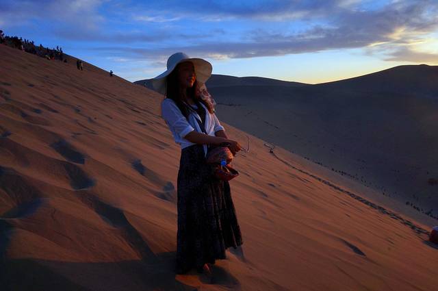 走出鸣沙山,已经九点了,同伴第二天要在兰州赶飞机。