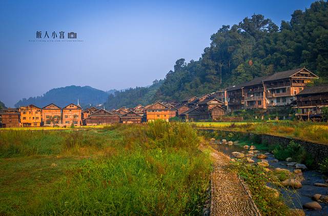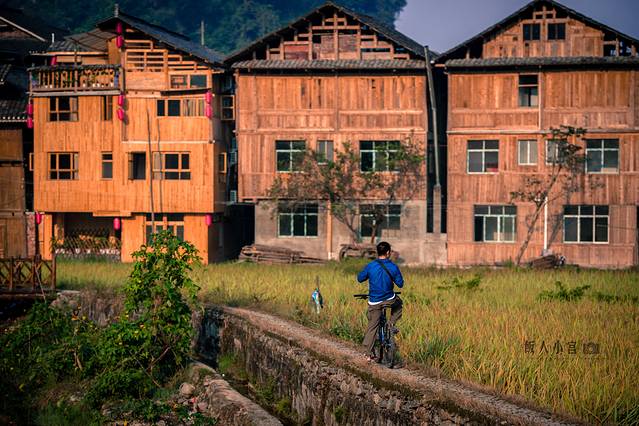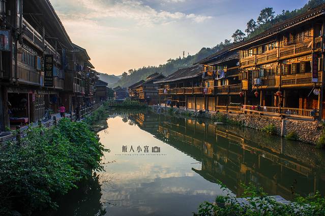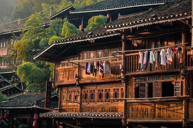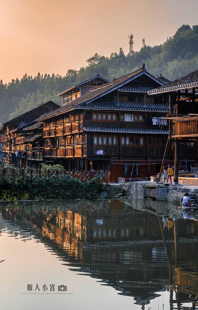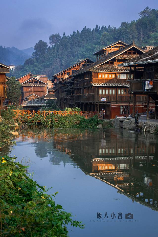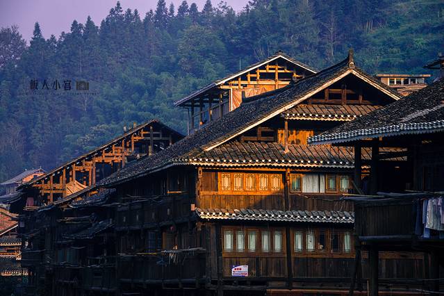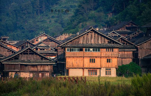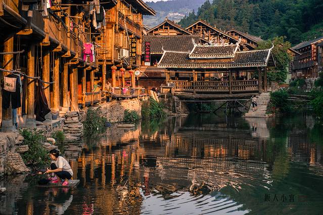 侗寨中心,是一条小河,两旁林立着木屋,一座座小桥横跨其上,河边不时有妇女在洗衣涮菜,乍一看,还以为来到了江南水乡。傍晚的光线愈发温柔金黄,小寨的一切都像是披上了一层金色的衣裳,忙碌了一天的侗族人纷纷从外面赶回寨子,孩子们放了学,老人们则继续聊着天,桥头上卖菜的大妈们迎来最忙碌的时候,而袅袅炊烟伴着阵阵香气更是让整座侗寨变得愈发惬意。尽管已经有不少背包客以及国外旅行者到访这座小寨,但这里的商业气息并不浓,面对来来往往的外来人们,寨子的侗族百姓丝毫不多加在意,而是依旧过着自己的生活,并没有发生任何改变,这也是这座小寨如此富有生活气息的最大原因。