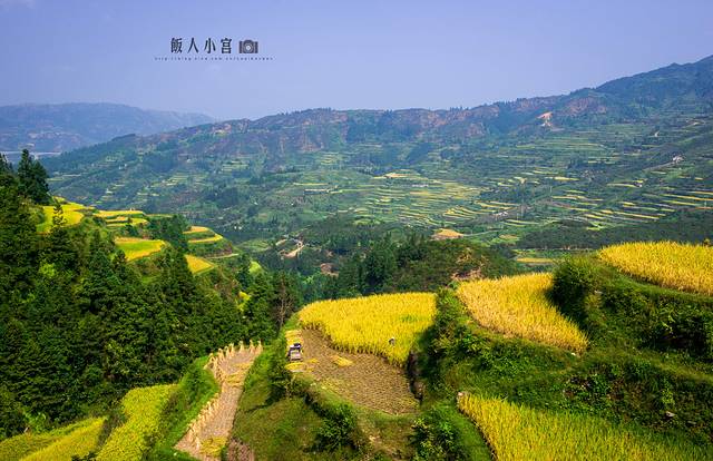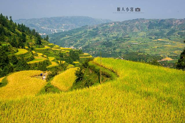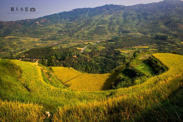 过了这片令人有些担忧的杂草地,就能走到一片梯田之上了,视野瞬间变得开阔了许多,眼前,金黄色的稻田毫无保留的展示在你的眼前,微风徐徐,稻穗随风摆动,撩拨着心弦荡漾,徒步的疲惫似乎削减了不少。这里的路更加狭窄,拍照的时候注意脚下,毕竟一脚跺到湿乎乎的泥巴地里甚至还带水的田里可不是什么好事。