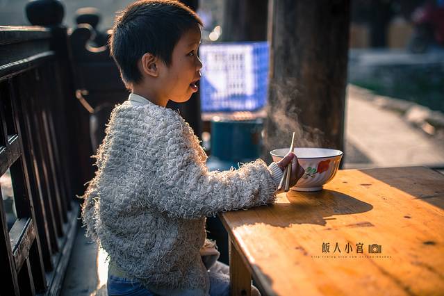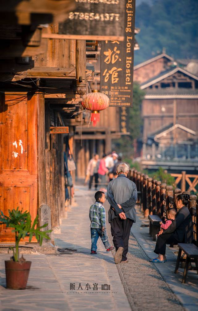 当我走回侗寨,街上的景象与清晨相比顿时有了生机,不管是坐在木桌上被家长催促正在喝面条准备上学的孩子;还是懒洋洋的蹲在屋檐下,似乎还未睡醒的小狗;亦或在河边悠闲的遛着弯的老大爷以及赶着出去干活的侗族青年,与这肇兴侗寨一起迎来崭新的一天。