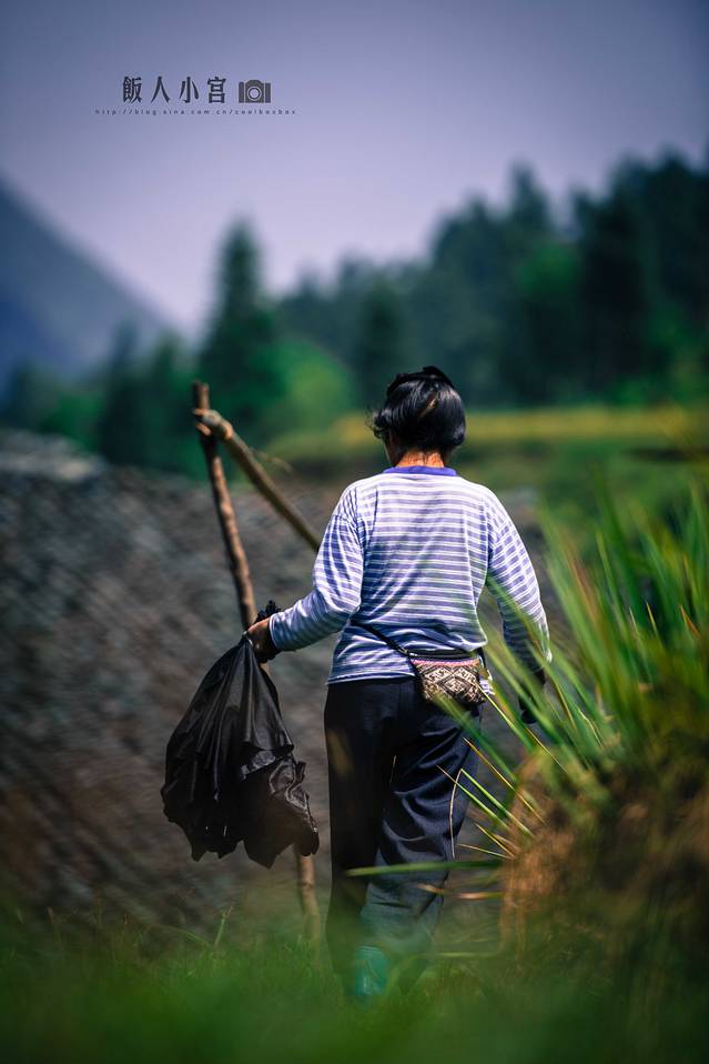 早上的田野中,你总能看到侗族人劳作的身影,头戴草帽,手持镰刀,男人们多会背一个形似牛角状的竹篓子,里面放满了各种工具,着实有意思,也是侗族人的一个标志,阳光愈发的强烈,打在身上暖暖的,清晨的寒意早已烟消云散,因为一直向上爬,还会觉得有些热。