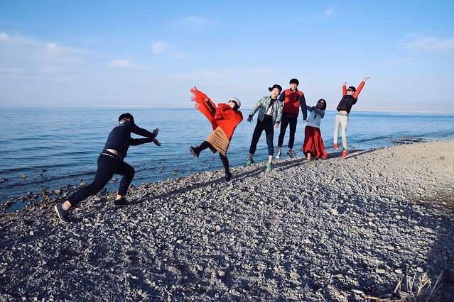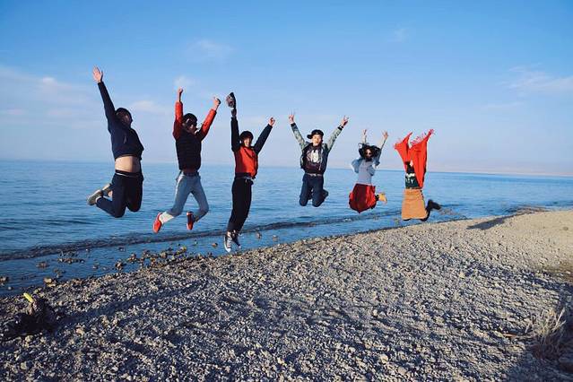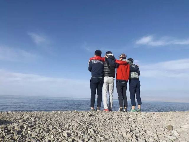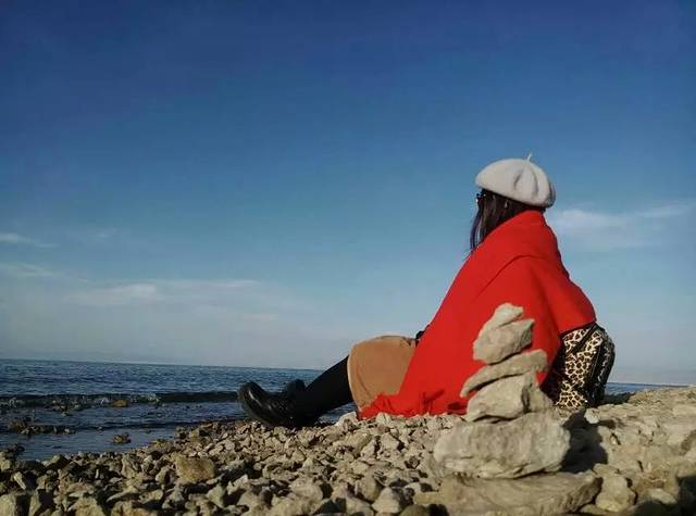 从倒淌河出来,我们饱饱的吃了一顿,大口的牛羊肉终于满足了饿了一天的我们。接下来又是在路上了,终于要去青海湖了。对青海湖的印象只停留在小学语文的课本里,那梦幻般蓝色的湖泊那一刻终于出现了....湛蓝的海水与天相接,风吹的海水拍打着石子溅起浪花。我不敢相信,我看到了这美丽的青海湖.....