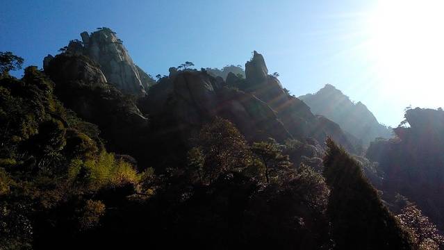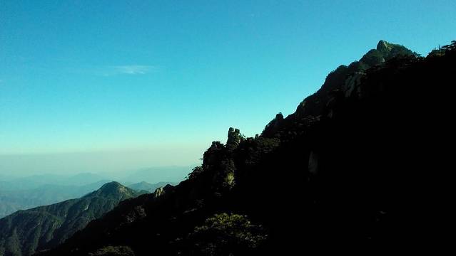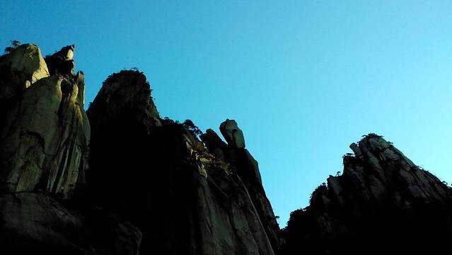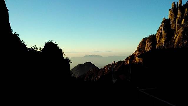 三清山天门群峰下这有高空探照灯亮路,但其他大多数地方较暗,不像黄山晚上山道旁有微光的路灯,所以如果月光也不亮的别太晚回山上住宿地或下山,晚上的星空还是很清晰的,让自己的眼睛和星月对视会感受来自遥远星球的凝视吧...