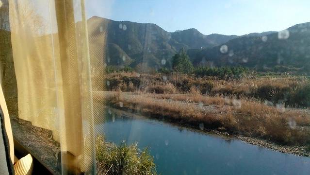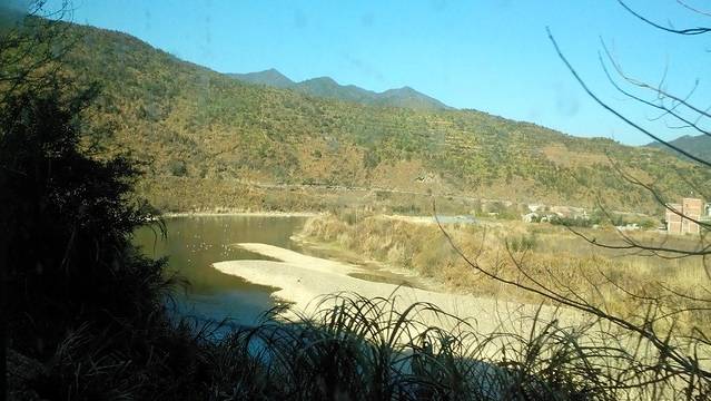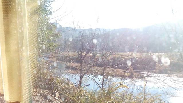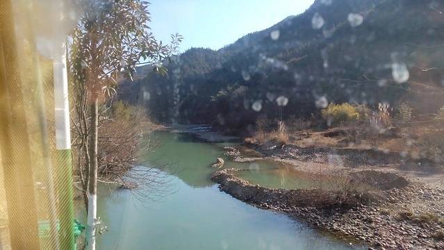 上中巴车时还有至少五六个空位但都被旁边旅客包占着,问了四五个老少男女包占的座都说有人,后来去最后一排和四个县城上学放假回家的职校学生坐一起挤五个位子,后来上车的是司机帮他们安排的有的让他们坐被包占的座,我坐到底前看到这些说旁边座有人的全都在胡扯!因为坐他们边上的全程互相没说过一句话,而且全是不同站下去的,下车时也没任何招呼,都是些什么人啊?!15:20左右发车的,还站着五六个人,开出不久车就穿行在山中了,左面还有河流蜿蜒,中途也陆续上来些当地人,一路上急弯不算多也不算颠,所以坐最后一排没什么不舒服,和旁边学生聊解了些当地情况。买票时女的问我边上前面的都买了车票,我20元早准备好拿手里了,但她始终不问我,看她转身后要回车前我终于叫住她买车票,2014最后一天不能晚节不保啊,贪人家这便宜没意思,她也不说为什么不问我买票就笑笑。快到终点前一二公里路两旁的农家乐已陆续分布,数量不少