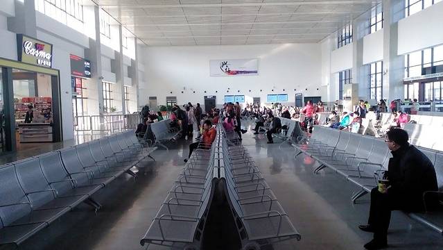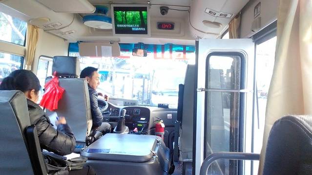 13:44第一个上的空中巴,司机说前面辆刚开走,他也刚到,运气真好啊否则背包站一个半小时挤着不好受啊,我一看挺巧正好是我从玉山汽车站来时坐的那辆车,定心挑了个右边当中的独座坐下,开始上车的也不多,大多数人经过都是坐后面停车场的旅行团大巴,过会上来人渐渐坐满,有六个一起的四个人放下包还下去前面超市买东西,司机看都坐满了还站了几个就让一起的同伴催下车买东西的快点上车要开了,过了几分钟还不来,司机把车开到前面超市路口让同伴再催,说要买什么县城里都有,在这买还贵!四个买东西的人磨蹭了会总算前后花了十分钟才上车,路上上车的当地人也不少尤其是背着包去县城里的学生,把车挤得满满当当,途中还有带女孩子的当地妇女看车好挤都不愿上车了。