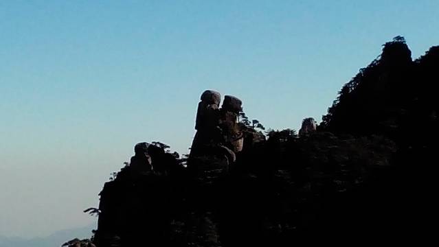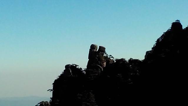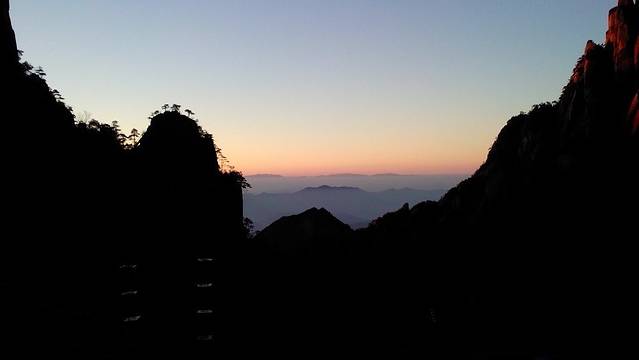 月光的清晖下有些星星拍的出,三清山天门群峰下这有高空探照灯亮路,但其他大多数地方较暗,不像黄山晚上有微光的路灯,所以别太晚回山上住宿地或下山,站石阶上抬头凝视了会来自遥远星球的深邃光芒,反正此时也没什么游客随我发挥...