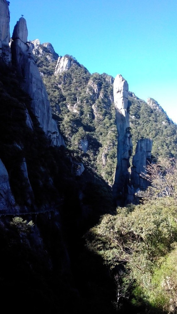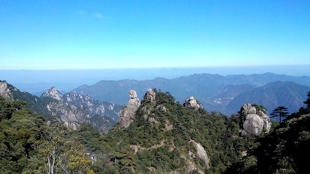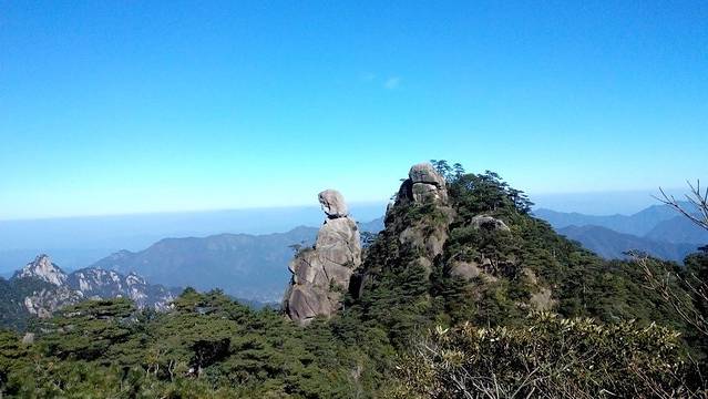 穿舒适软鞋很重要,上山前看气象预报,带薄雨披有备无患,早晚温度比白天明显要低按季节需要带衣帽,想省钱就扎帐篷或住山下走步道带吃喝,山上路标还是比较清楚的,三清山控烟做得比黄山松很多,景区步道里几次看到有游客吸烟也无人管的情况,这样下去很危险!这可是江西省第一个世界自然遗产啊,也是地球上和黄山并称最美丽壮观的花岗岩地貌景观!