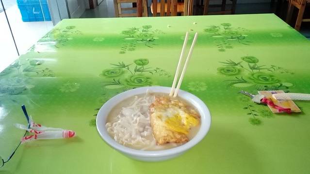 7点半起来洗澡喝开水理东西,8点半不到退房问了前台小姑娘今天天气,小妹看自己手机查微笑回应态度很亲切,过马路到汽车站旁本来想吃铅山汤粉,看人太多座位都没算了。就对面10元沙县,三两人在吃,店较空