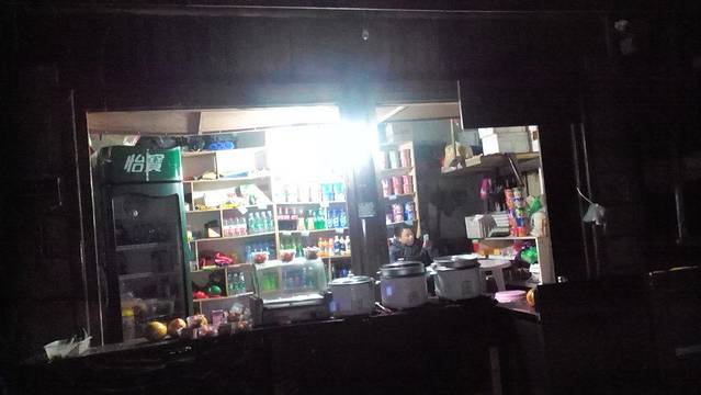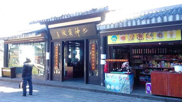 16:46走到南清客栈门前了, 其实走去的路上老板娘(这时还不知道她是南清客栈的,只以为是路人乙)拿着瓶盒装白酒赶上来问我是一个人来玩的?住在哪啊?我说订好了,进门跟个50岁左右男的说我网订好的房先上游客服务中心去看能先买好明天的门票和索道票嘛,再下来办入住手续,他说好的就前面,这时女老板娘也进客栈小卖部了,楼下小餐厅有两游客在吃晚饭互相打了招呼问了说是浙江来自驾游的