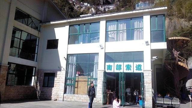离开天门山庄再往下去索道经过万寿园下入口处看台阶有点陡长,有个女的正好下来,问她里面感觉怎么样?!结果她说只是路过没进去看,我因为之前做攻略看万寿园去过的大多说主要是人造景观,自然景色要比其他景区逊色不少,所以我时间虽足够但没什么兴趣花一小时进去看看,进索道厅看完纪念品小吃10元买了幸福饼,稍微排队等了几分钟检票进了,前面一个中年妇女可能要等后面的同伴不愿独自进缆车而男工作人员要她进正拉拉扯扯还说进个缆车怎么这么难?!我看前面两位男的也不想进,就直接和工作人员说那我进吧,他朝我挥挥手,我进去后正好缆车快关门了,8个位坐了连我7人右旁空位正好放包,和车上主要对角人聊了会,我左旁边的游客竟然连山上有住宿都不知道,这些都是距离不远来玩的游客,我和他们说了下上饶灵山,他们也不太清楚...