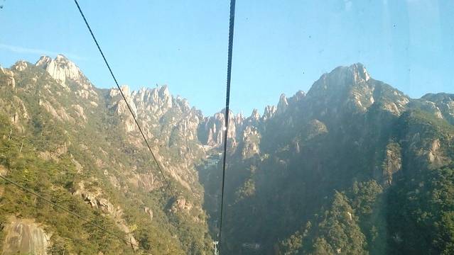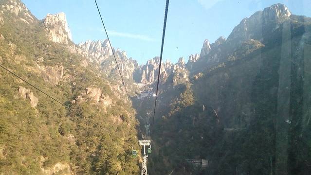 因为空调没什么力道,为避免感冒影响游山,柜里(还有羽绒大衣)拖了条破脏被(一般的破脏我也就不加这两形容字了)再加盖上,晚上睡觉开始当然是很安静的,到凌晨三点(我看手机的也是此时看到了新浪微博推送的上海外滩跨年踩踏死亡35人的新闻,感慨生命脆弱无常啊,这么多年轻人等待新年的来临期盼祝福却永远倒在了2015的门口,心情有些沉重...)窗外有一小拨队伍走步道上山,应该是去看日出的,其他人都声音很轻有个小伙子因兴奋吼了一嗓,南面走上去也就1.5-2小时左右比北面走轻松不少(3个小时),我之后也没怎么沉睡,但并不觉得困累。所以旺季住这凌晨走上山人多可能会影响睡眠,今天虽然元旦但索道还是按周四的时间表8点才开,为把两天游览时间和体力多留给山上看景,所以决定缆车上下再说现在冬季特惠价也不贵的,7:05分起床后冒寒洗热水澡,下楼吃早餐面后上来吃了个上海带来的香蕉,再刮胡子整理东西围好围巾带好手套退房拄拐出发,门口逗留的游客已挺热闹了,出门早晨温度有点低的。