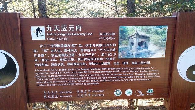 再笔直往前就是三清福地景区了,先是经过这九天应元府,道教是我国本土宗教自东汉顺帝时张陵(活了123岁!)创五斗米道和汉灵帝时张角创太平道始已有1800多年历史了,道法自然,天人合一,金庸武侠书里的王重阳丘处机知道嘛?!是历史上真名人啊!就是全真道士!成吉思汗让丘处机掌管天下道教尊他为神仙啊!唐玄宗还亲自为《道德经》作注呢!贵妃杨玉环“太真”就是道号明白不?!道教主要派别就是全真(不能娶妻食荤,强调清静无为)和正一(天师等演变而来,教主是张陵后裔,可以结婚,崇拜神仙),道教是追求修炼长生的,传说东晋的葛洪是三清山的开山祖师,而明景泰时的王祐创建的三清宫龙虎殿等几十处道教建筑,还铺了长达10公里的登山石阶,三清山属于丹鼎派(炼丹长生)道教名山,想起西游记里太上老君和他那炼丹炉了嘛?!悟空同学在里面蒸过桑拿奥!...