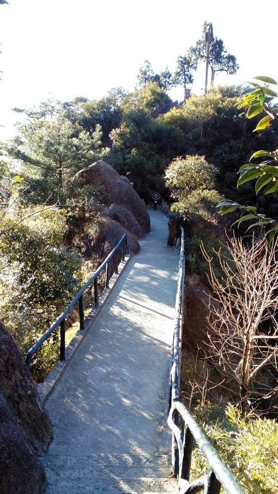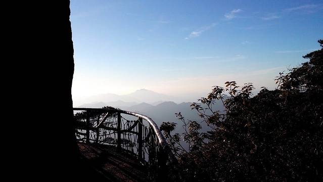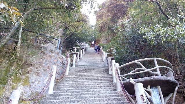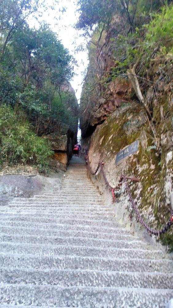 在我感觉还是很轻松的,也就南清园景区一线天至玉女开怀段台阶较陡长(玉京峰东南废路也算),万寿园下入口的台阶和南索道上站到日上山庄段以及南清园禹皇顶附近台阶有点陡,玉京峰西北路坡度挺平缓,阳光海岸和西海岸都只是两头有点坡度还可以的台阶,当中都是平坦栈道,三清福地那台阶也较平缓的,总得来说我中等体力游两天山上五大景区再加当晚连续游走县城3小时腿一点不酸,所以我也明白了韦大师(天下第一游客)说的汽车博士穿宾馆拖鞋能顺利游山的原因。
