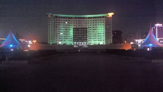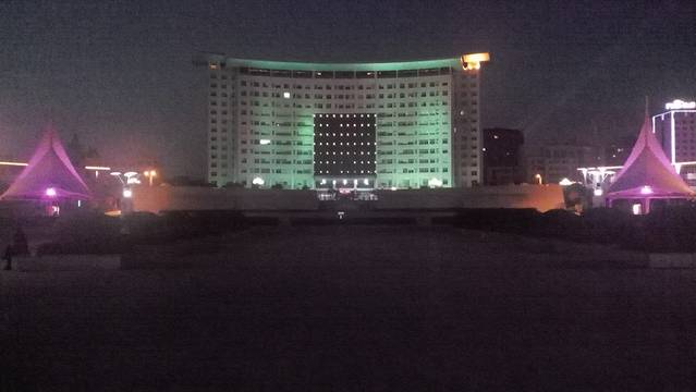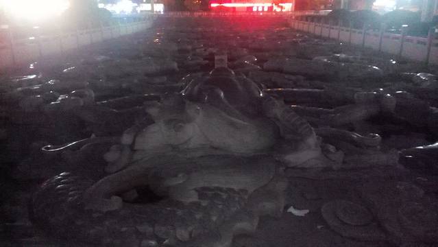 玉山县城有什么好看看游览的,我曾问过三个当地人,玉山汽车站去三清山中巴车上的学生,中巴司机,新建路快餐店老板,前两人说是夜市挺热闹的,后一人说是公园,本来我对小县城也不抱什么希望,反正就当溜达四处转转,想不到新建路一路向南(有时旁边东西方向路也进去看看再回主路向南最后绕个圈回酒店还没走累又人民大道走了会)走下来还挺有趣的,你猜我邂逅了什么?!:故宫气派的广场浮雕华表还有彩灯帐篷,巴黎艾菲尔铁塔的姐妹塔,外滩风格徽州色调的冰溪河景,黄鹤楼韵味的塔山武安楼,火流星墙,还有江西当地漂亮石纹的龙尾砚(这没拍照挺大的,有个开价600元雕工石纹都挺美,谁书法画画的弄个不错的),全城小孩都在热玩的蹦跳器...