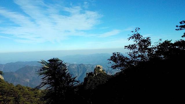 禹皇顶这也是个台阶走到顶的观景平台,弯弯曲曲的台阶走上去12:37到,官方说西海岸里听响云,但南清园靠近阳光海岸的禹皇顶这我家里的旅游老书《道教名山大观》说这里是三清山听响云的最佳地,一般在夏季雨后!云海深处犹如“嘘嘘”的丝竹齐鸣,或“噼噼啪啪”的云撞山崖声!谁要是真有幸耳闻目睹记得赶快手机拍摄录音啊,跟我讲让我们一起沾光欣赏天籁奇观啊!也不枉我翻出几十年前旅游老书告诉你这天然剧场的地方!